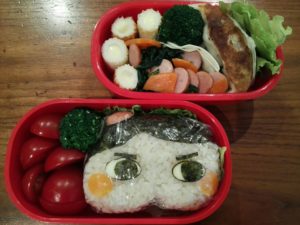 いつもベネッセのタブレットで勉強をしている息子へ、 今回の遠足はコラショのキャラ弁を作りました! 材料があまり家になく、 コラショのオレンジ部分はニンジン、 黒い部分は海苔と、 シンプルです。。。